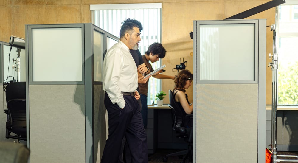 “When Karimi is working or on the phone with dispatch, the camera faces outward toward the office. The movement of workers and the depth remind us of the regime’s domineering power. This is in stark contrast to the intimacy created when Karimi is talking with his son,” Samia continued. “The PYXIS was great to use in the cubicle. Despite the tight space, the camera’s full frame and size really helped us achieve wide shots while being tight on the actor.”