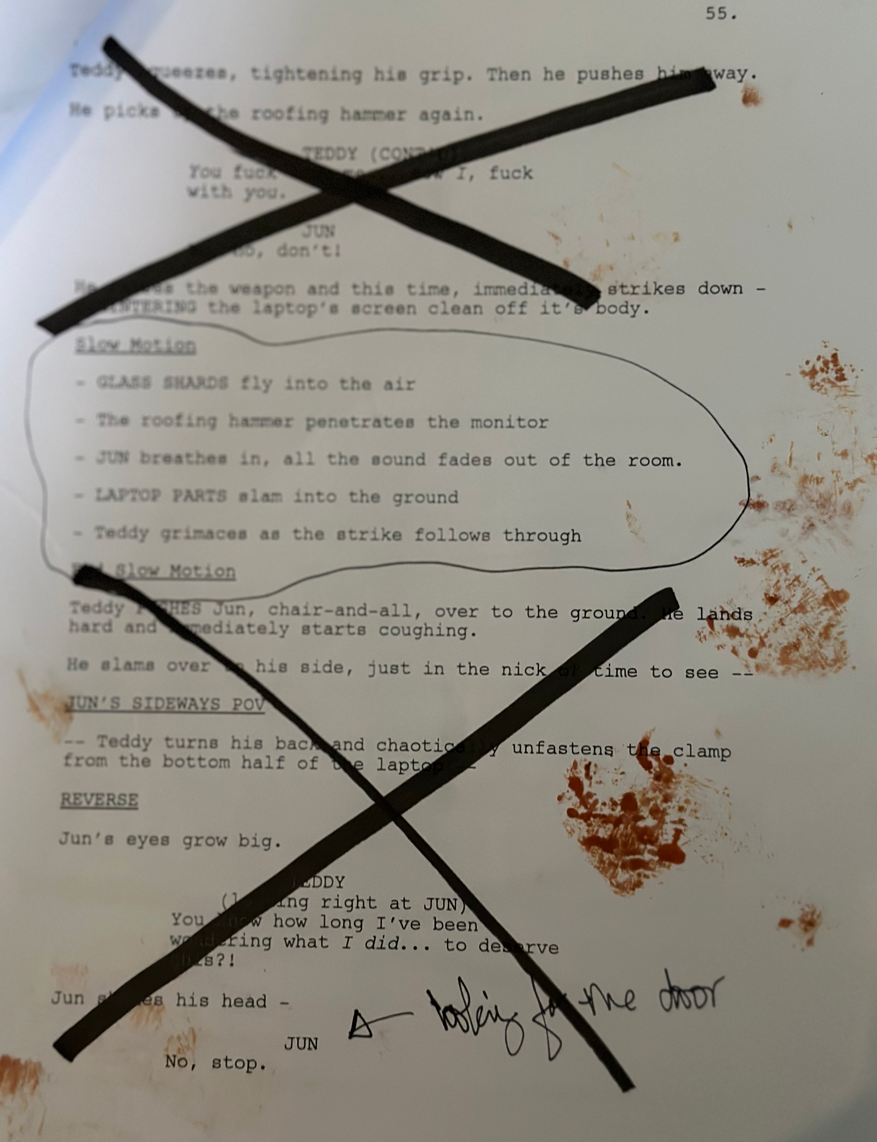 Definitely the use of barbed wire is uniquely me and my obsession with pro wrestling. That and the Car Wash scene, which I won't spoil for anyone here.