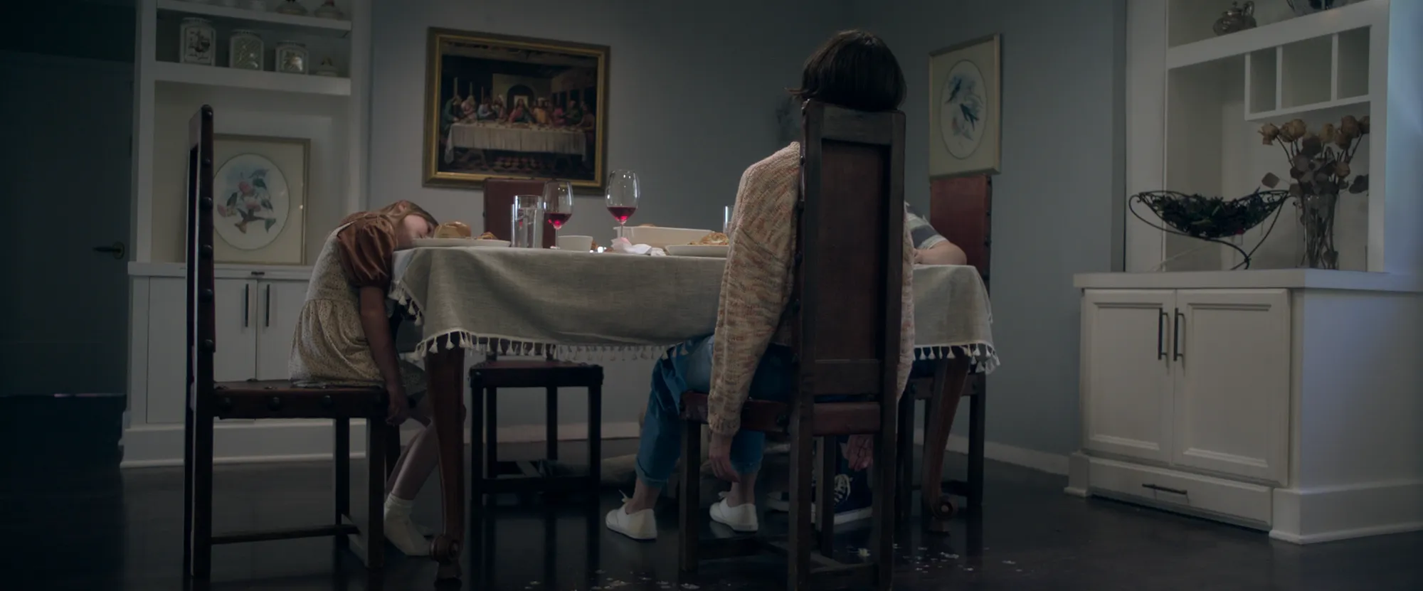 For this story, there was always a very big technical challenge, which was executing a rotating lazy susan shot that happens at the climax of the film, where the entire family meets their demise. This shot was challenging not only because it required a remote head and perfect execution by our cinematographer and camera team, but because there was use of special effects vomit, blood, and many cues for our actors to be able to perform at the right moment. I remember all the tests and all the prep we put into preparing this shot, and I remember having a backup plan just in case we went over on time and couldn't execute the shot. It wasn't until I was under the table, tapping my actors for their cues as I was watching on a monitor that I realized how critical pulling off this shot was to make this film work. I remember not wanting to hold myself to anything technical and really wanting to be able to focus on performance, but after seeing this shot put together, I don't think the film would have worked without it.