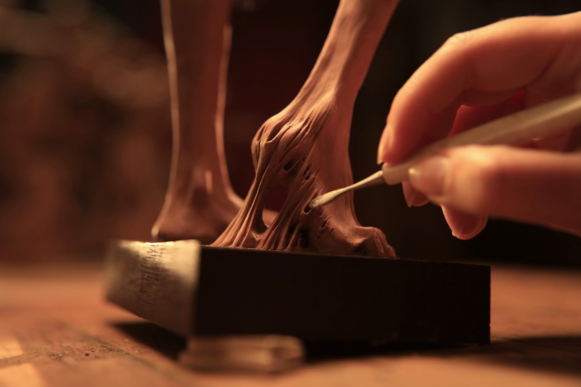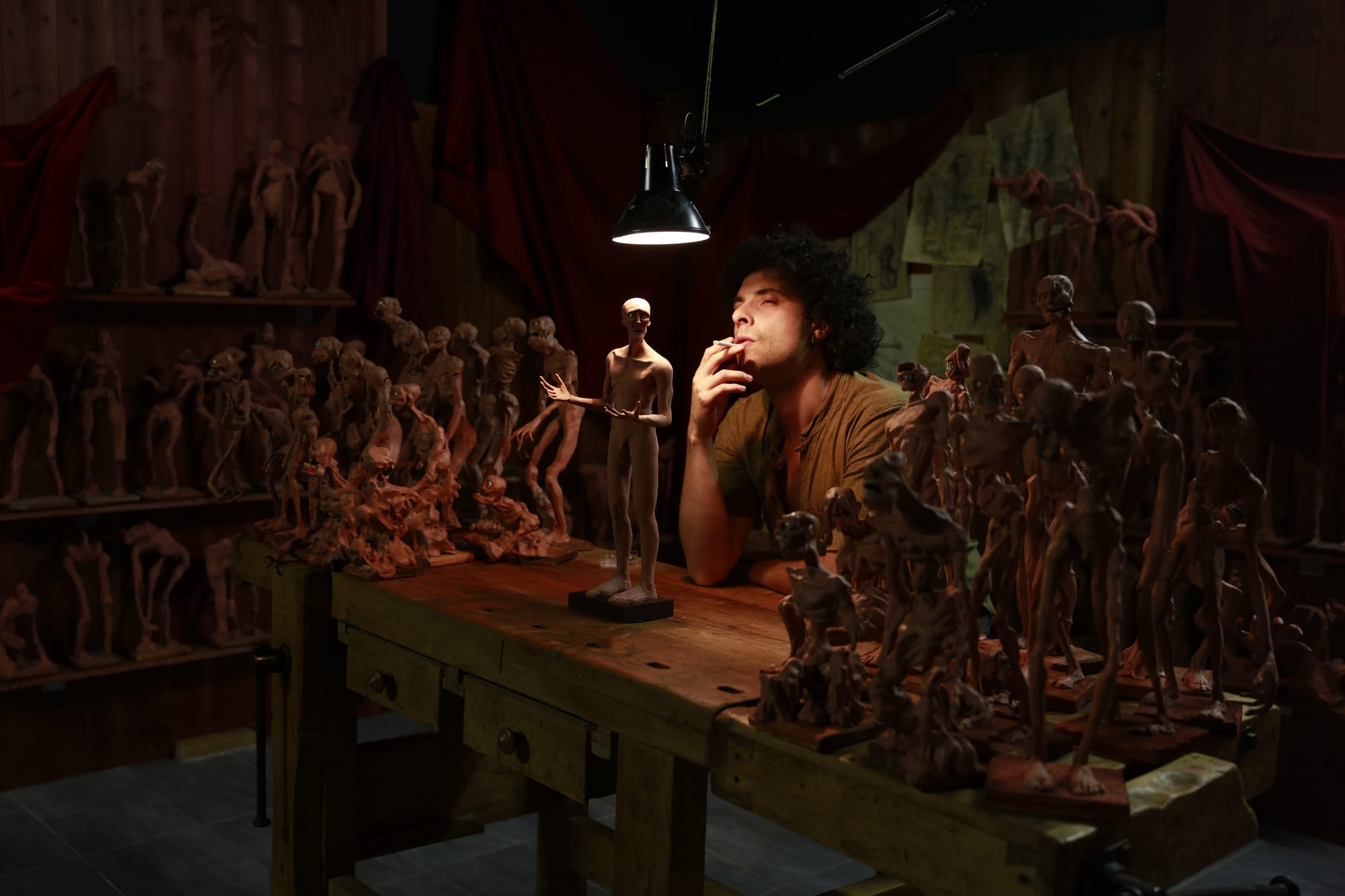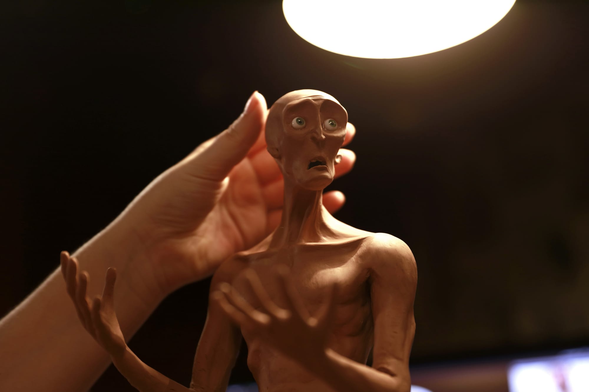 The story started as an idea of the director, Matteo Burani, and he had this concept, he's a sculptor and a painter, and he had this concept of this creator becoming obsessed with the sculpture that he's creating, and then somehow abandoning it. Abandoning the creation that the creator has created. So the point of view nearly immediately became one of his sculptures. So, a creature that comes to life and then [we] immediately empathize with that. And it's kind of a good metaphor of, you know, life entering into existence. We were brought into this world. We need to figure out who we are, where do we stand and who are these, you know, authority figures that we look for in our families, our fathers, our gods. So there was a lot there and it was immediately inspired by Goya for example, the Spanish painter. Alberto Giacometti is a very famous sculptor and he was making these very thin sculptures that really represented the fragility of the human experience. All of this came into this vision of Playing God.
