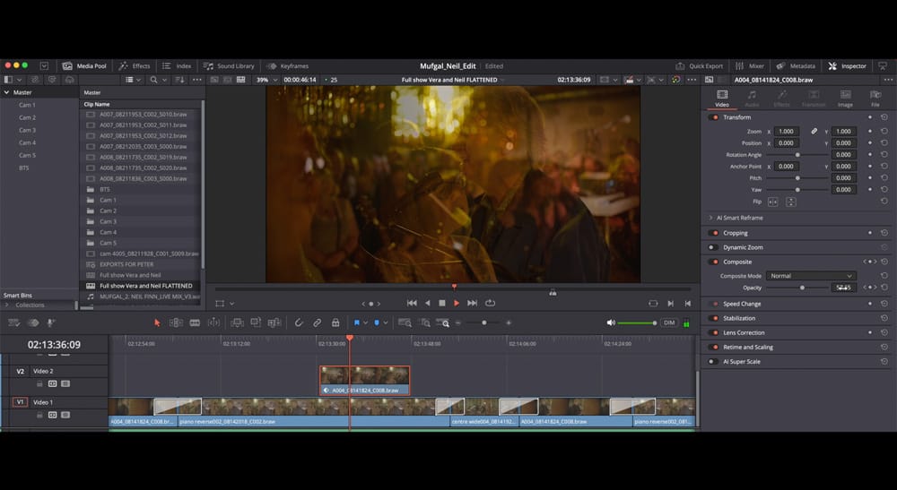 He explained: “The sessions are always recorded in camera at the highest resolution we can. We did the stream and the audience would leave, and then we could easily sit around and watch the stream back playing it out of resolve. The ISO files play right from the Cloud Store to my Mac instantaneously and there is no buffering. Even when I converted the timeline into full res multiclips I could play in real time from the Mac Mini - and it only has 16 gig of ram!