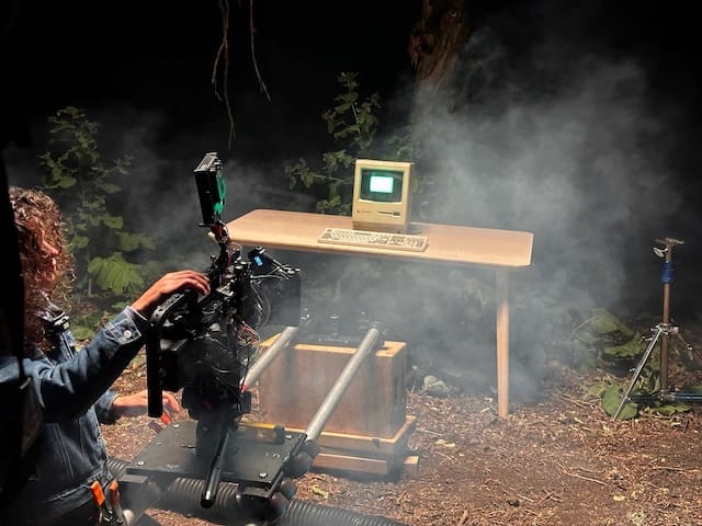 Lens baby! We had so much fun filming the "trip" sequence where my character is scampering around the woods. The tilt shift effect from a lens baby was perfect. Thanks Gabe!